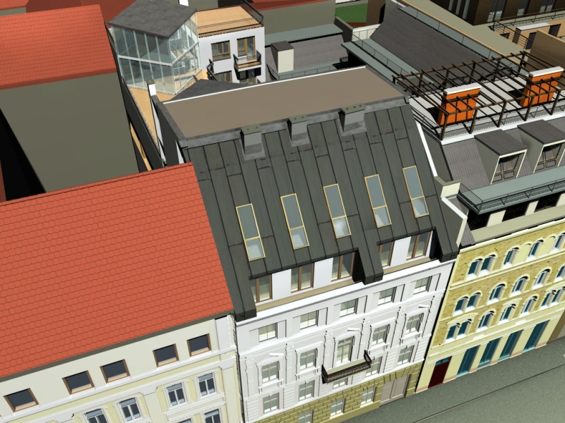 A harmadik és negyedik szinten lévő lakások a kiemelkedő tájolásuknak köszönhetően világosak, míg az ötödik emeleti lakásokhoz ezen felül tágas tetőteraszok tartoznak belvárosi kilátással. A 46 nm – 150 négyzetméterig terjedő egyszintes illetve duplex lakások tervezésével, a környéken számos sikeresen megvalósult projekt tervezését végző építészeti irodát bíztunk meg. A tervező csapat a modern, de mégis emberközpontú lakások és a környezetbe illeszkedő épület létrehozását tűzte ki célul.