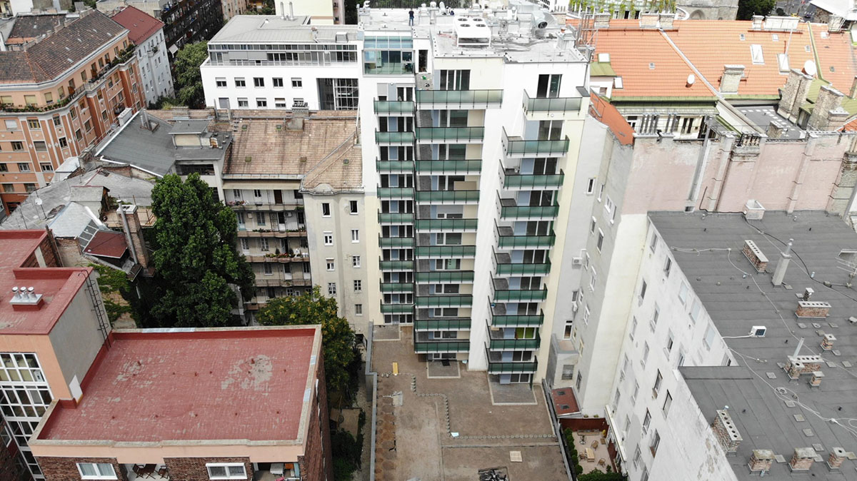 – A társasház megfelelő fűtéséről és hűtéséről a födémszerkezetbe építendő felületi hűtési-fűtési rendszer gondoskodik majd, amit egy intelligens, úgynevezett iCON típusú termosztáttal lehet majd vezérelni minden lakásból egyedi szabályozás és mérés mellett.